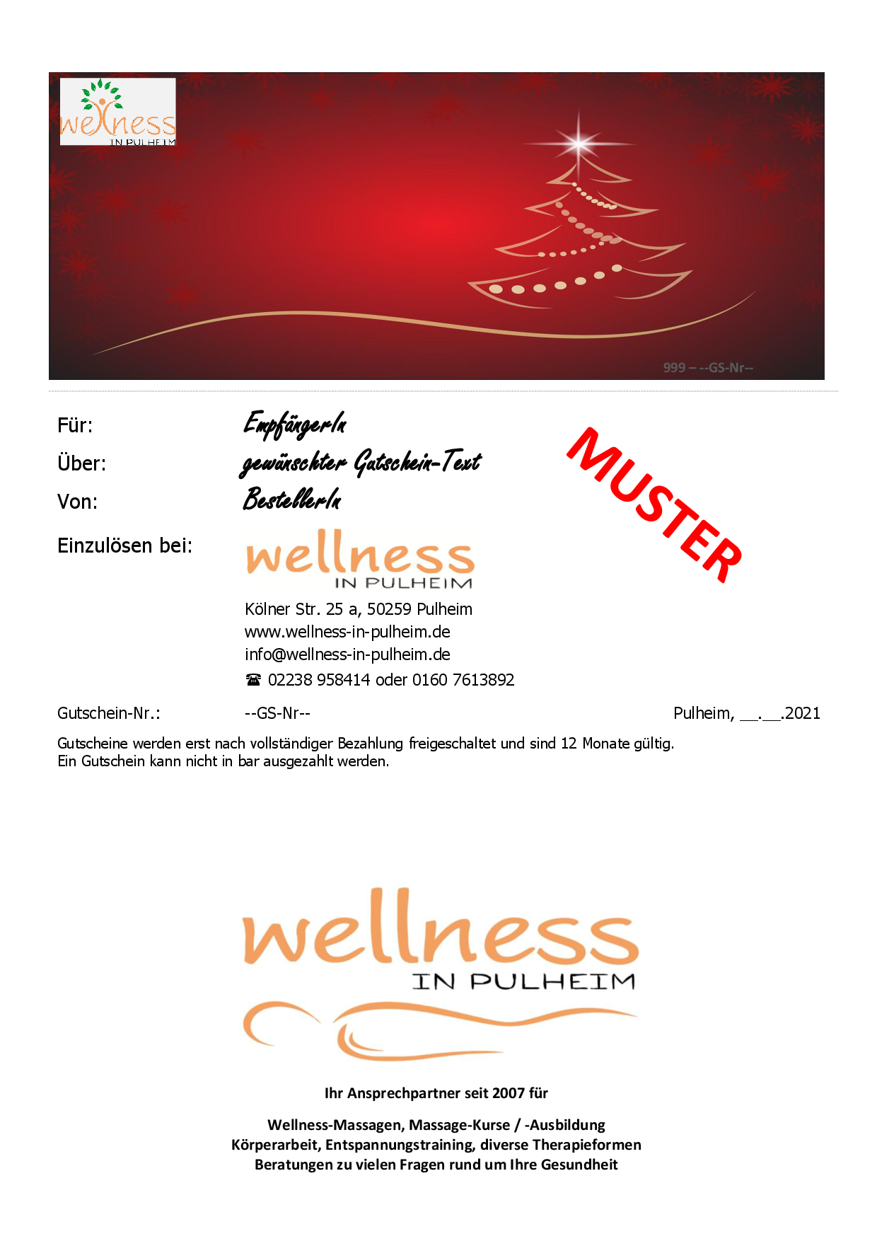 Die inzwischen häufigste Form bei meinen Gutscheinen ist die Klappkarte. Sie kann auch als PDF-Datei zum Selberdrucken in ganz eiligen Fällen verschickt werden. Alternativ kann sie auch auf einem Farblaser und auf Karton-Papier gedruckt und verschickt werden. Auch eine Abholung (nach Terminabsprache) ist möglich.